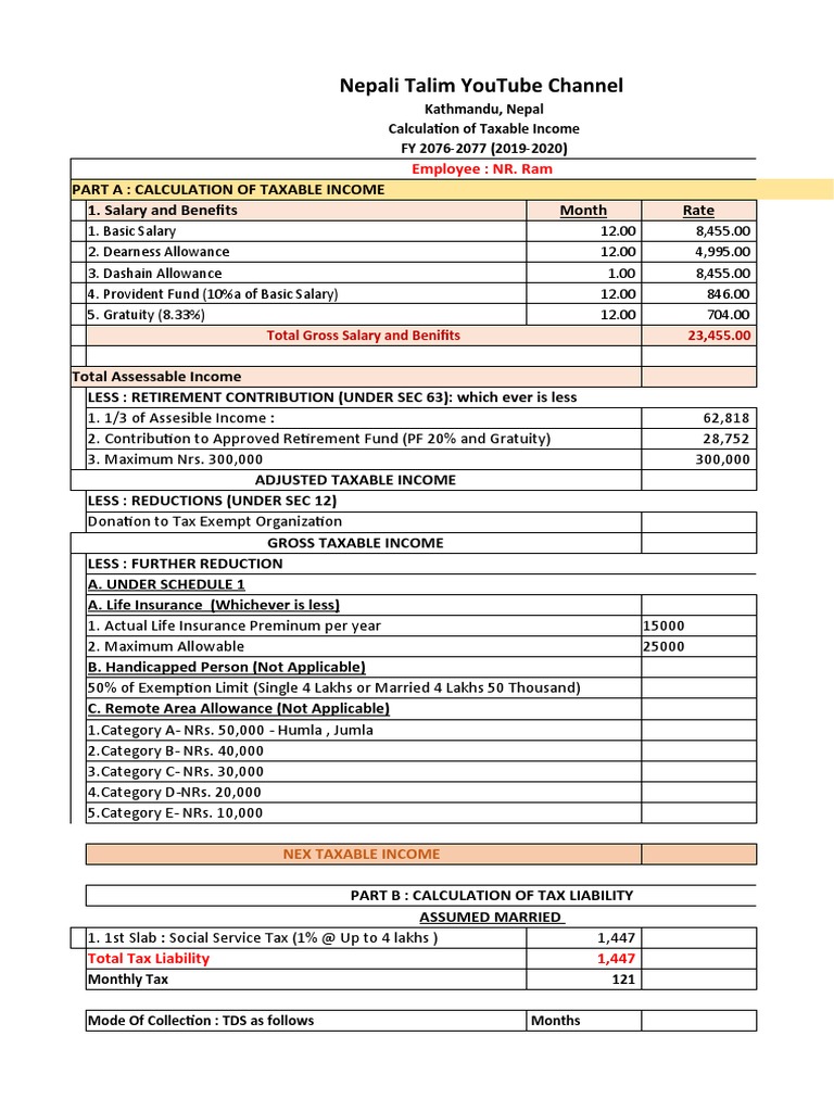 Ssf Not Listed Monthly Salary Sheet With Tds Calculation 2076 2077 Pdf Tax Deduction Taxes