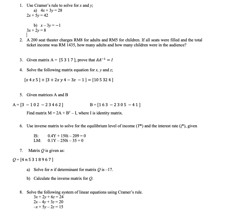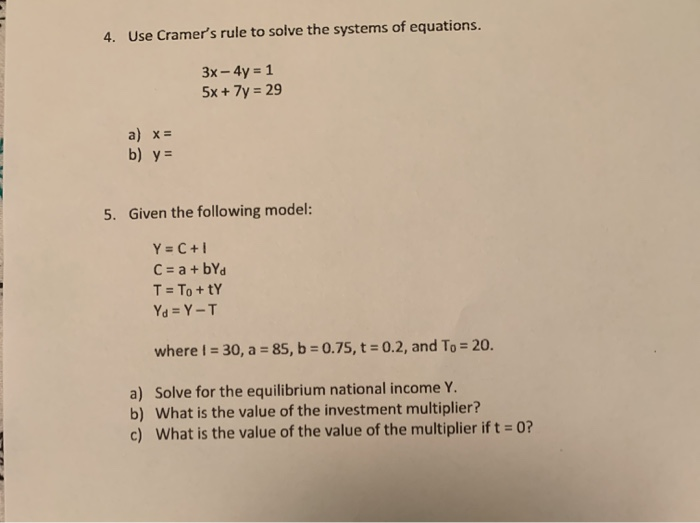Solved 1 Use Cramer S Rule To Solve For X And Y A 4x Chegg Com